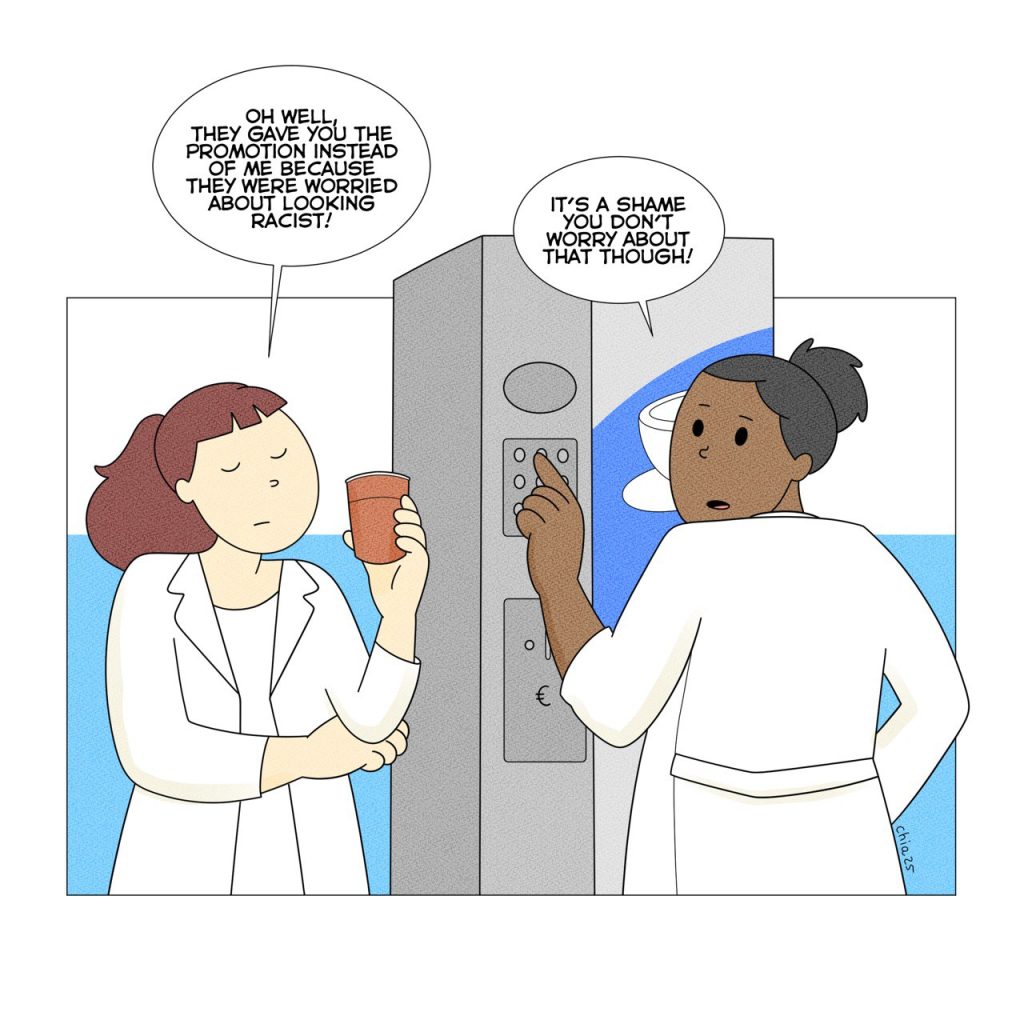 Di solito una persona nera deve faticare molto, perché le venga riconosciuta qualcosa, per esempio sul lavoro o nello studio, nelle arti o negli sport: non basta essere abbastanza brava, devi essere bravissima, eccellente. Eppure le peraone bianche sono pronte a pensare, per prima cosa, che il motivo della promozione, di quel premio o risultato ottenuto sia altro.